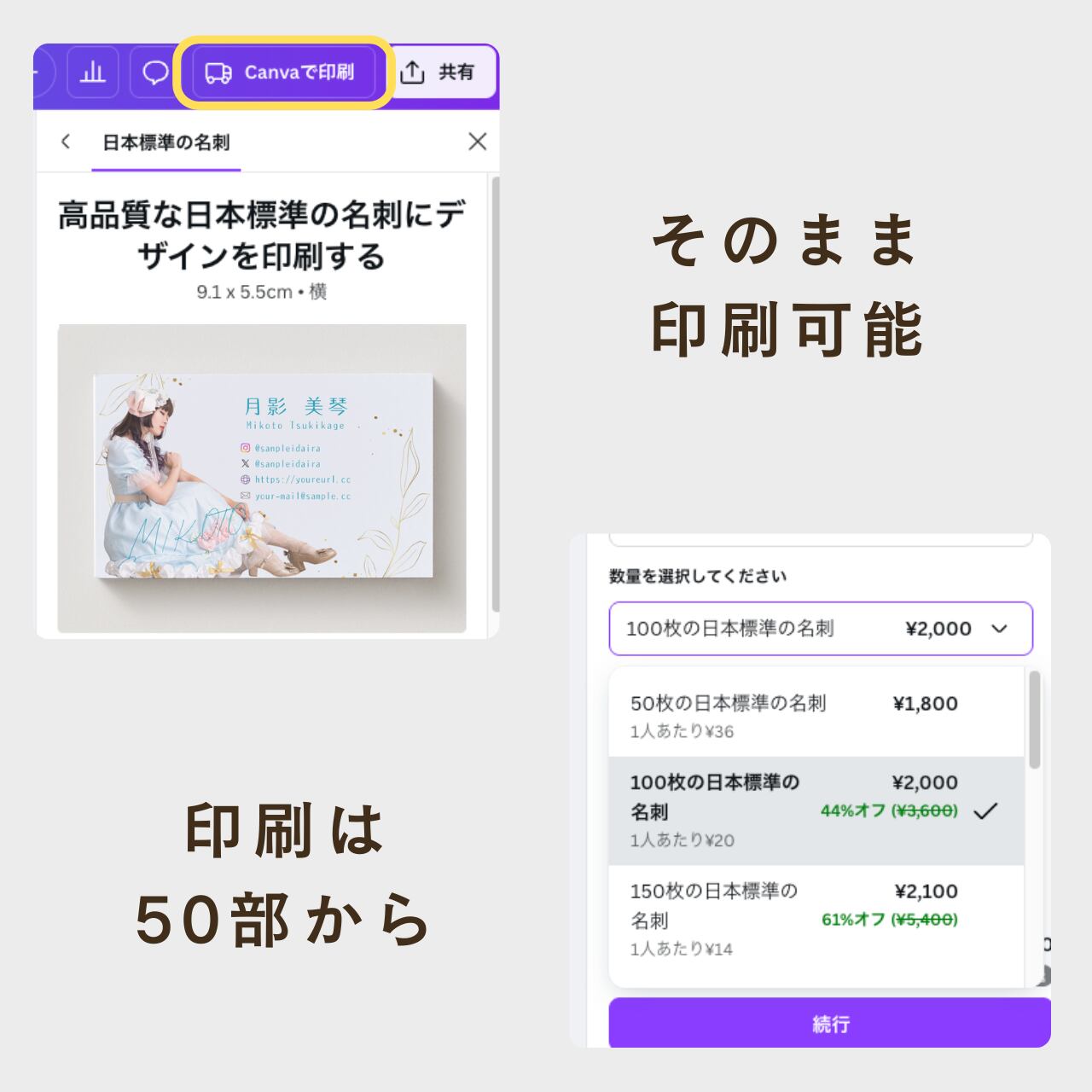 文字や色、フォントを簡単に変更・修正して、すぐにオリジナルの名刺が作成できます。